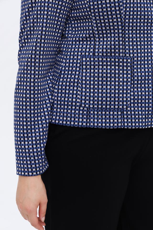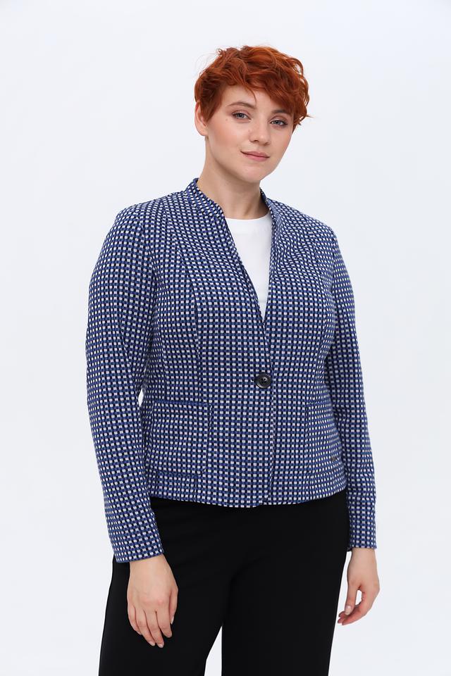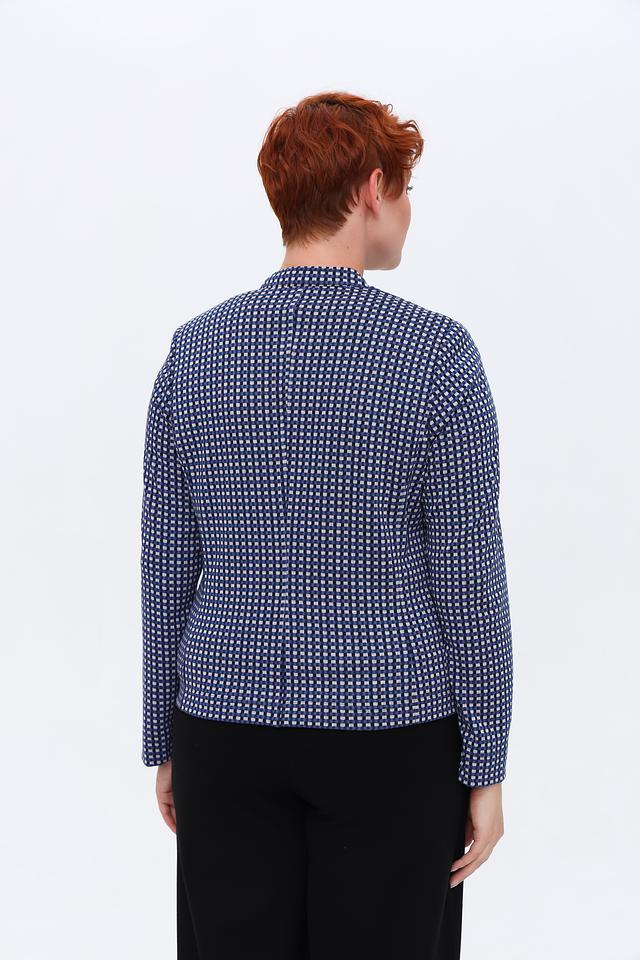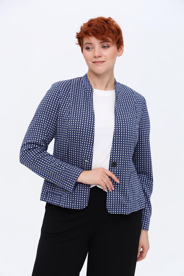 Этот жакет от Erfo выполнен в синем цвете с мелким белым рисунком, напоминающим клетку. Жакет имеет классический крой, который подчеркнет достоинства фигуры и обеспечит комфортную посадку.