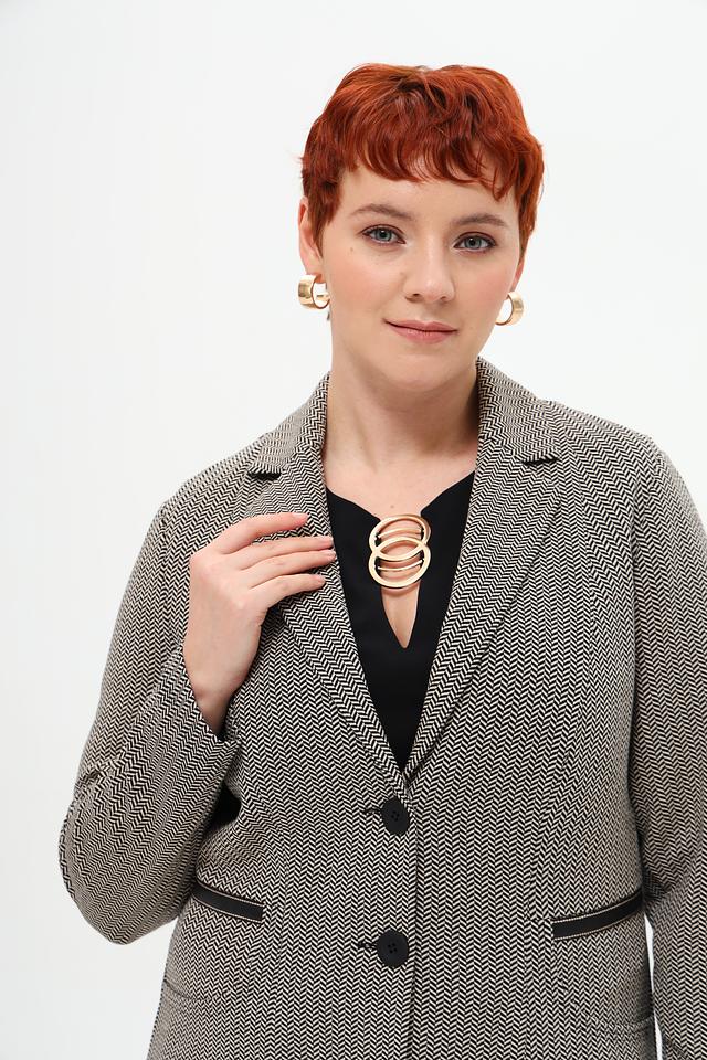 Этот жакет станет прекрасным выбором для создания делового или повседневного образа. Он хорошо сочетается с юбками, брюками и платьями, позволяя создавать разнообразные стильные комплекты.