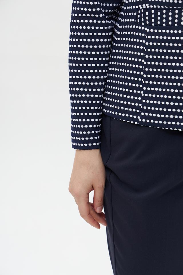 Жакет Frank Walder темно-синего цвета с белым горошком – стильное и удобное решение для создания элегантного образа. Модель выполнена из качественного полиамида с добавлением эластана, что обеспечивает комфортную посадку и свободу движений. Состав: полиамид 95%, эластан 5%