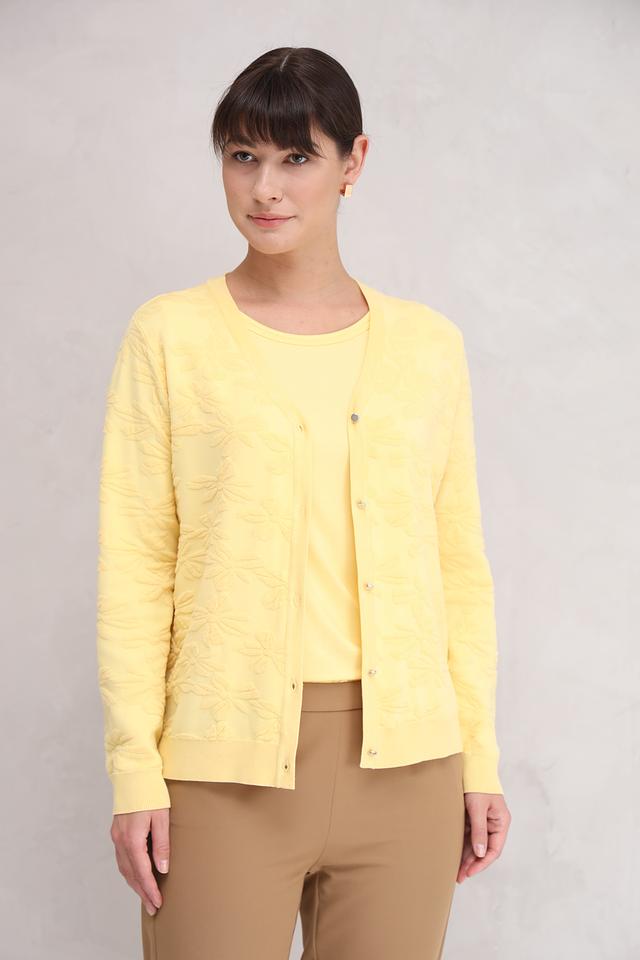 Жёлтый жакет Frank Walder с цветочной вышивкой – стильное и комфортное решение для создания элегантного образа. Модель выполнена из мягкой вискозы с добавлением полиамида, что обеспечивает приятные тактильные ощущения и хорошую посадку. Состав: вискоза 62%, полиамид 38%