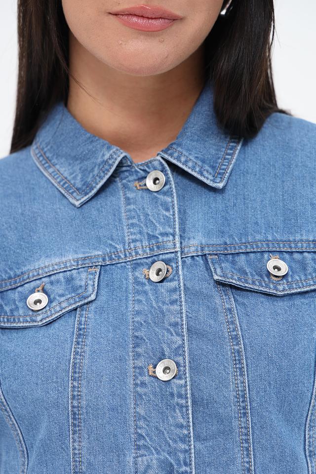 Модель имеет классический крой с длинными рукавами и отложным воротником. Застежка на пуговицы позволяет регулировать силуэт и создавать различные образы. Жакет идеально подходит для повседневной носки и легко сочетается с джинсами, брюками или юбками.