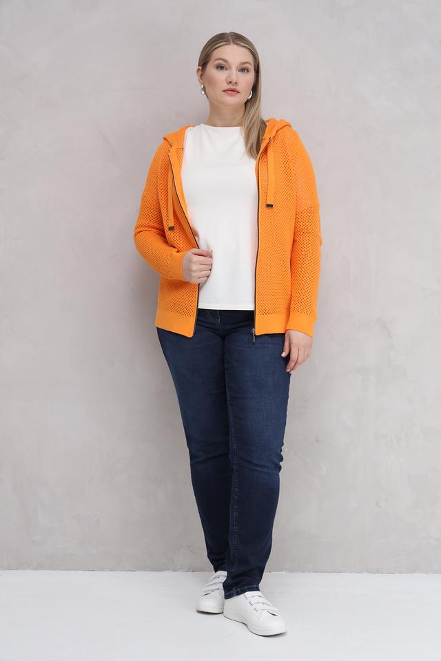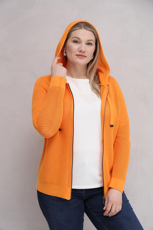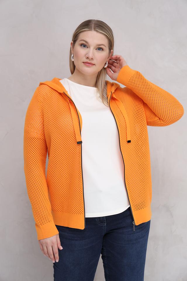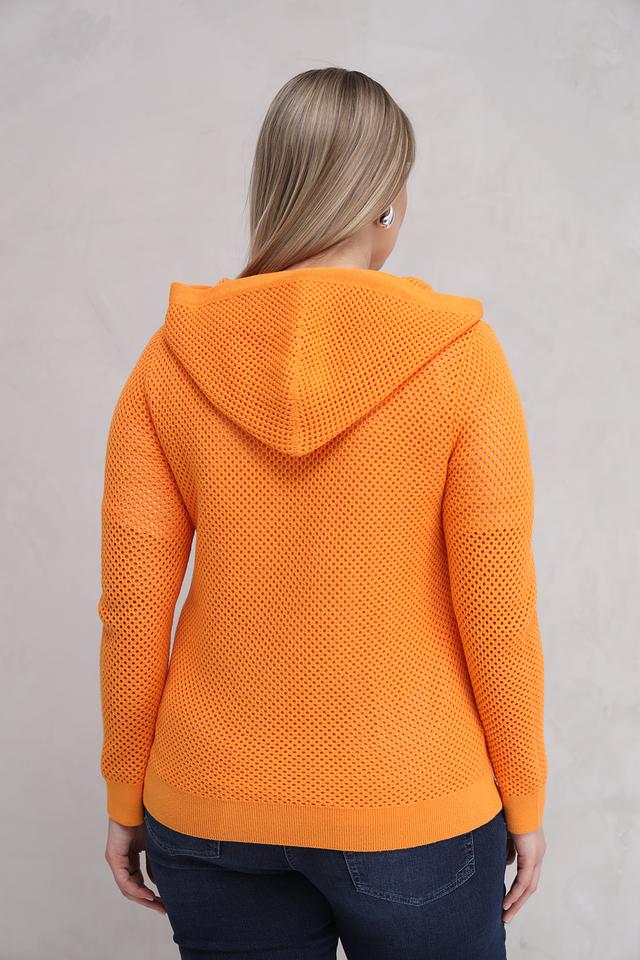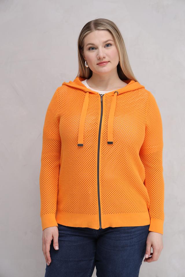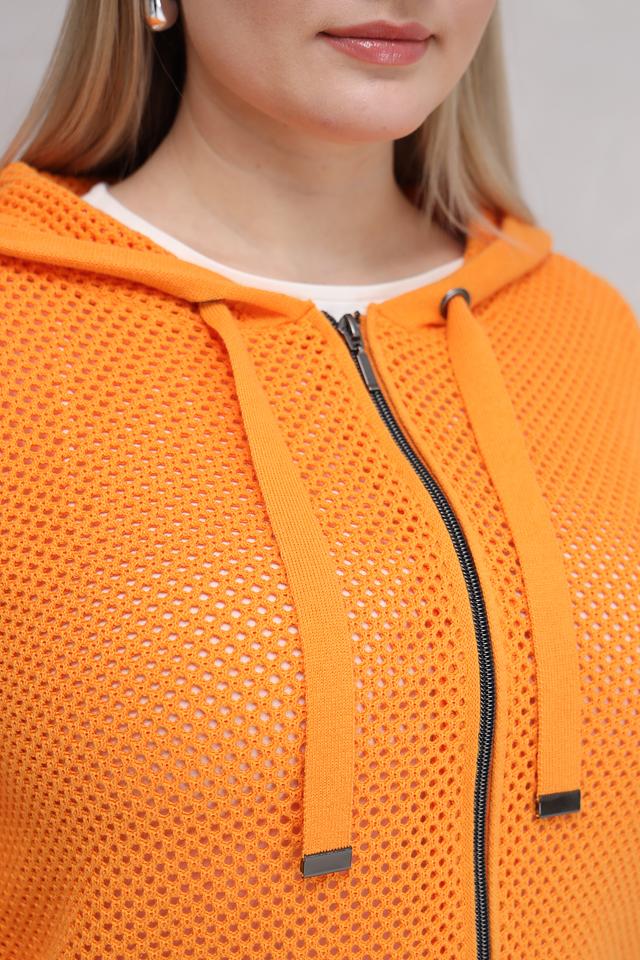 Оранжевый жакет от Lebek с капюшоном и застежкой-молнией станет ярким акцентом вашего образа. Модель выполнена из ажурного трикотажа, что придает ей легкость и оригинальность. Состав: хлопок 50%, полиакрил 50%