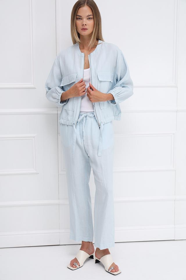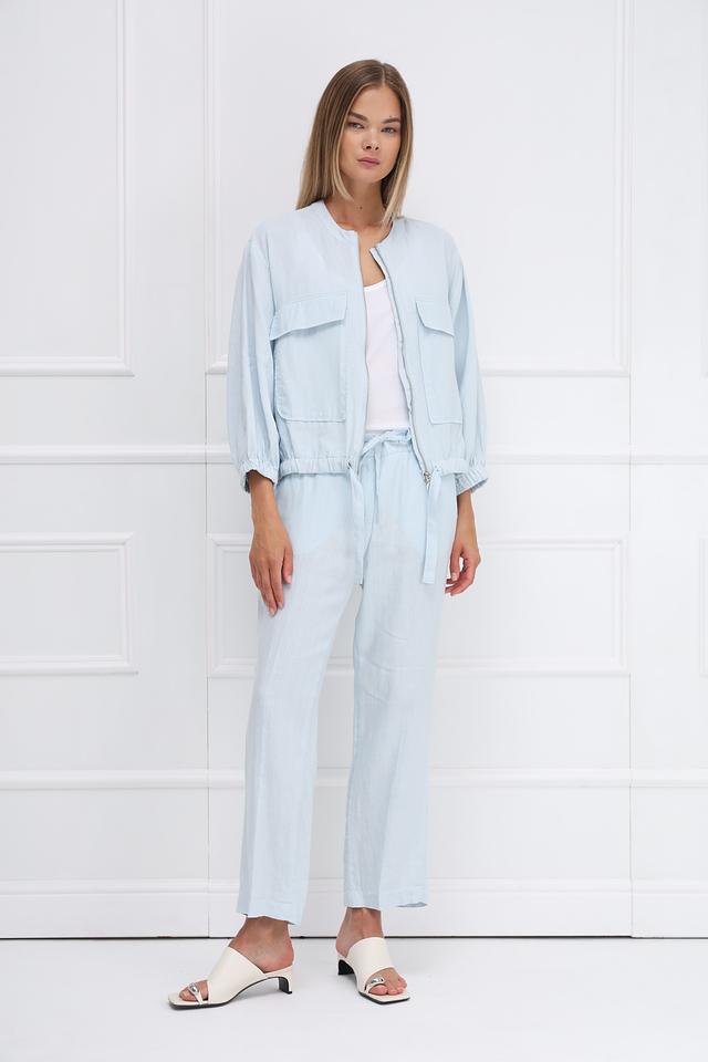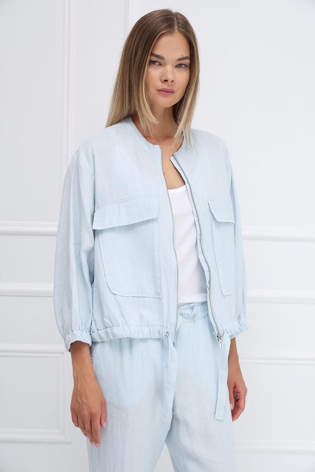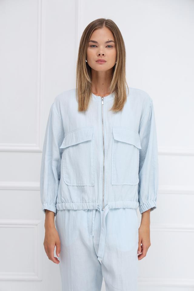 Жакет Monari голубого цвета выполнен из 100% льна. Лёгкий и стильный жакет на молнии с карманами и рукавами 3/4 станет отличным дополнением к вашему образу. Подходит для создания повседневных и летних образов. Состав: лен 100%