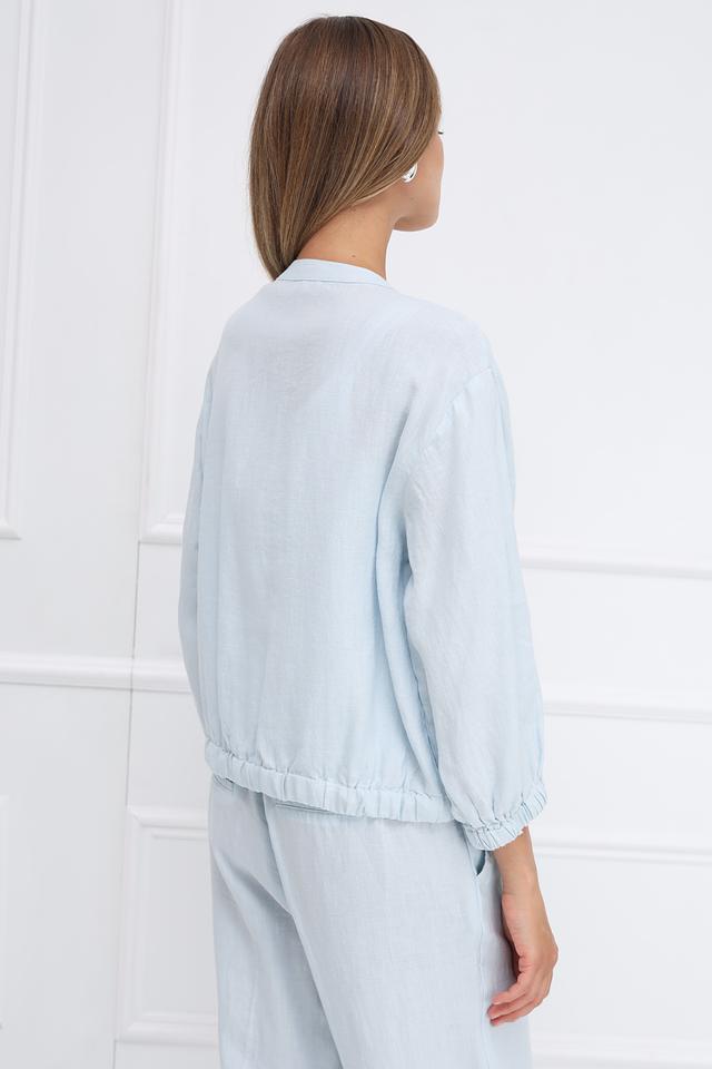 Нежный голубой цвет жакета легко сочетается с различными элементами гардероба, позволяя создавать разнообразные образы – от повседневных до более элегантных. Этот жакет идеально подойдёт для летних прогулок, встреч с друзьями или работы в офисе.
