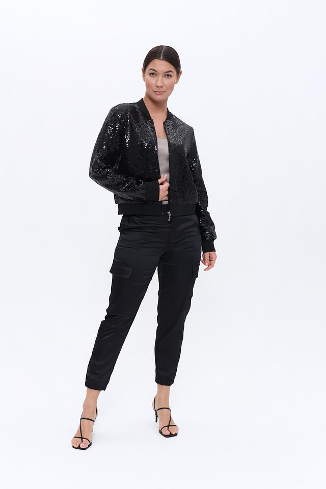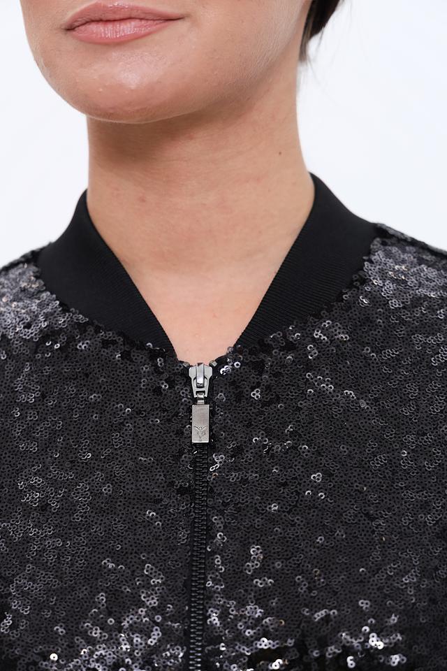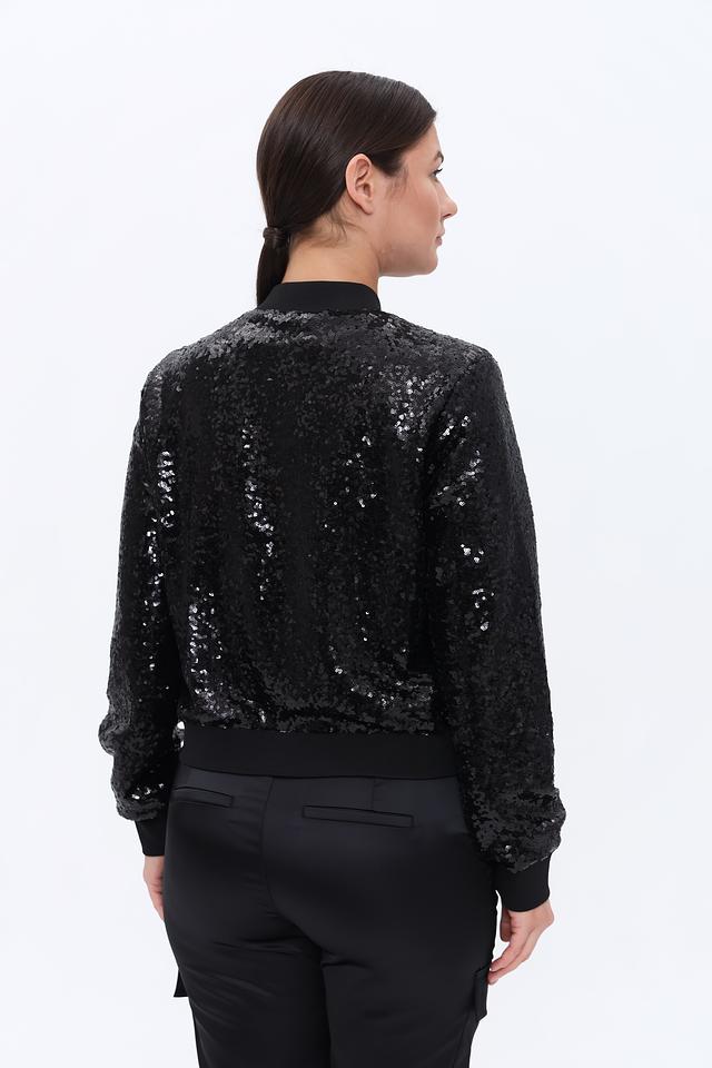 Этот стильный жакет от Monari станет отличным дополнением к вашему гардеробу. Жакет выполнен в чёрном цвете и полностью покрыт мерцающими пайетками, что придает ему нарядный и эффектный вид.