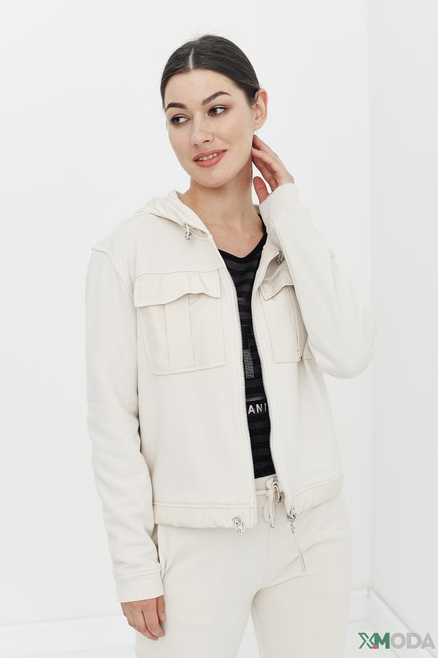 Бежевый жакет Monari – это стильная и удобная модель с капюшоном и накладными карманами. Жакет выполнен из мягкого хлопка с добавлением полиэстера, что обеспечивает комфорт и практичность в носке. Состав: хлопок 85%, полиэстер 15%
