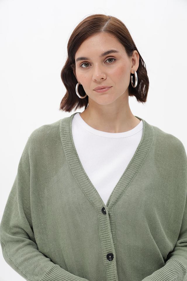 Женский кардиган Oui хаки – это стильная и комфортная модель из 100% льна. Удобный крой и натуральный состав делают этот кардиган идеальным выбором для повседневной носки. Состав: лен 100%