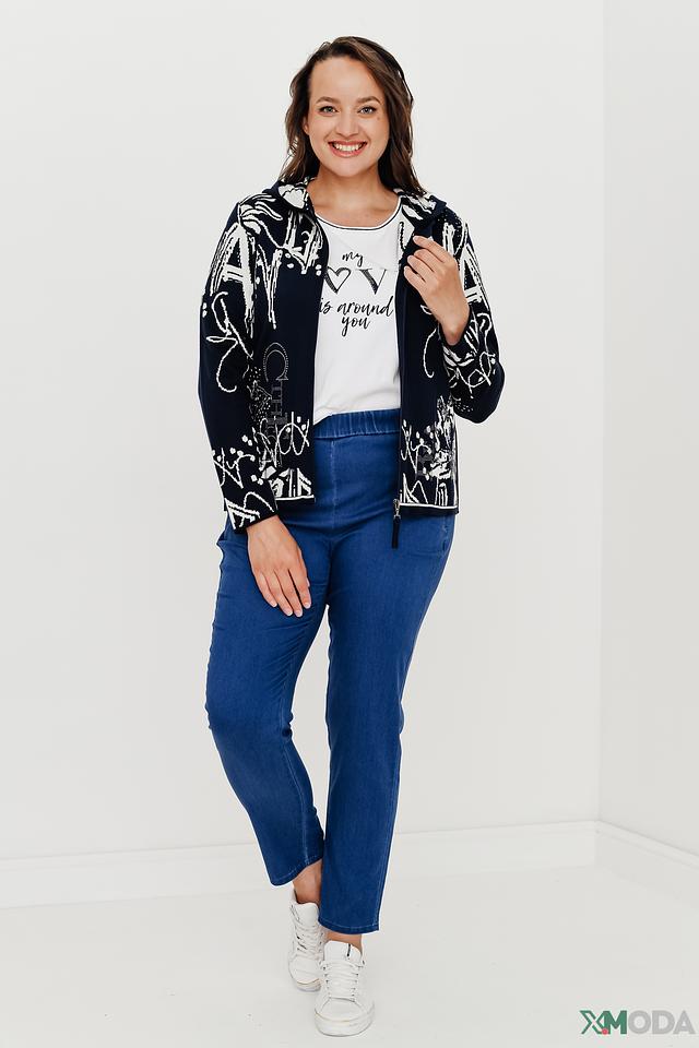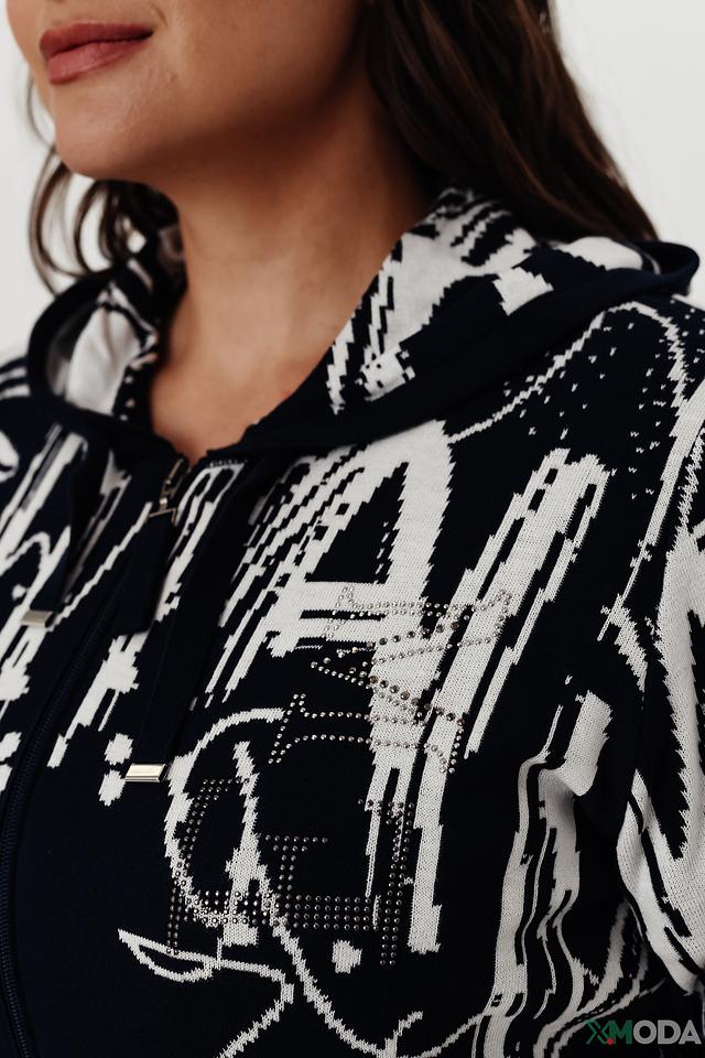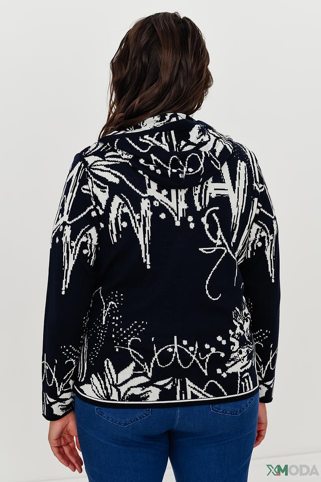 Жакет Rabe collection темно-синего цвета с оригинальным геометрическим узором станет стильным дополнением к вашему гардеробу. Модель застегивается на молнию и имеет удобный капюшон, что делает ее практичной и универсальной. Состав: хлопок 50%, полиакрил 50%