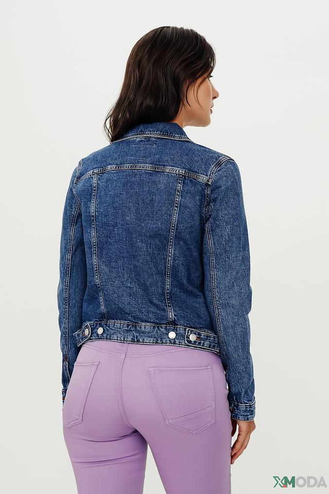 Жакет выполнен из высококачественного хлопка с небольшим добавлением эластана, что обеспечивает комфорт в носке и сохранение формы. Застежка на пуговицах позволяет легко регулировать посадку. Отделка в виде эффекта потертости придает жакету непринужденный и стильный вид.