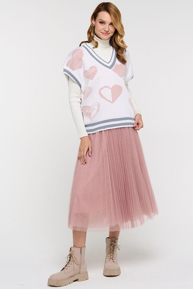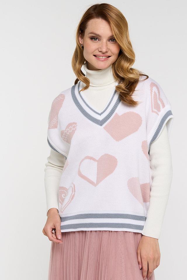 Белый жилет BE YOU с нежным розовым сердечным принтом станет стильным дополнением к вашему гардеробу. Изготовлен из мягкой шерсти и пана, обеспечивая комфорт и тепло. Идеально сочетается с рубашками, водолазками и юбками. Состав: пан 70%, шерсть 30%