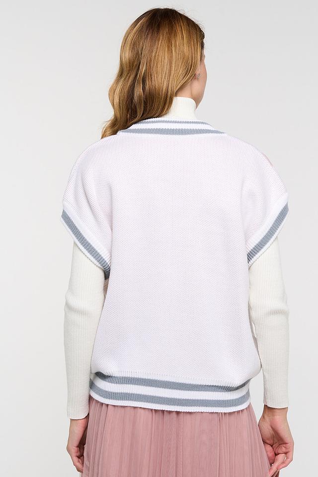Этот стильный жилет от BE YOU станет прекрасным дополнением к вашему образу. Модель выполнена в белом цвете с милым принтом в виде розовых сердечек. Классический V-образный вырез и декоративная полоска добавляют изделию изысканности.