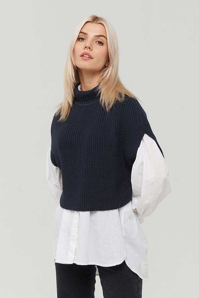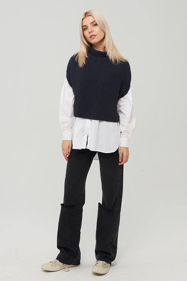 Представляем вашему вниманию стильный вязаный жилет от бренда BE YOU. Данная модель выполнена в тёмно-синем цвете и станет отличным акцентом в вашем гардеробе.