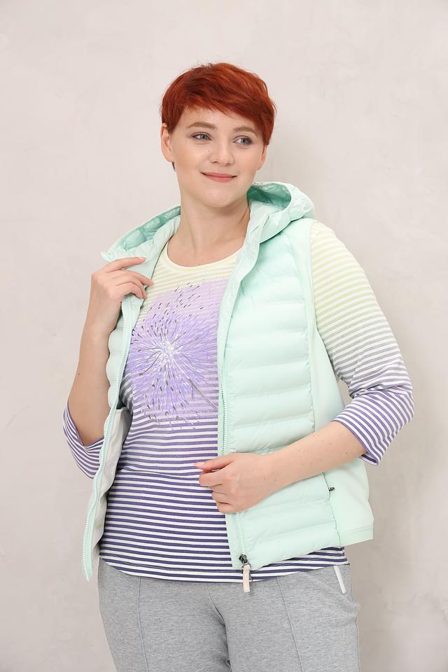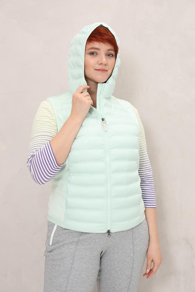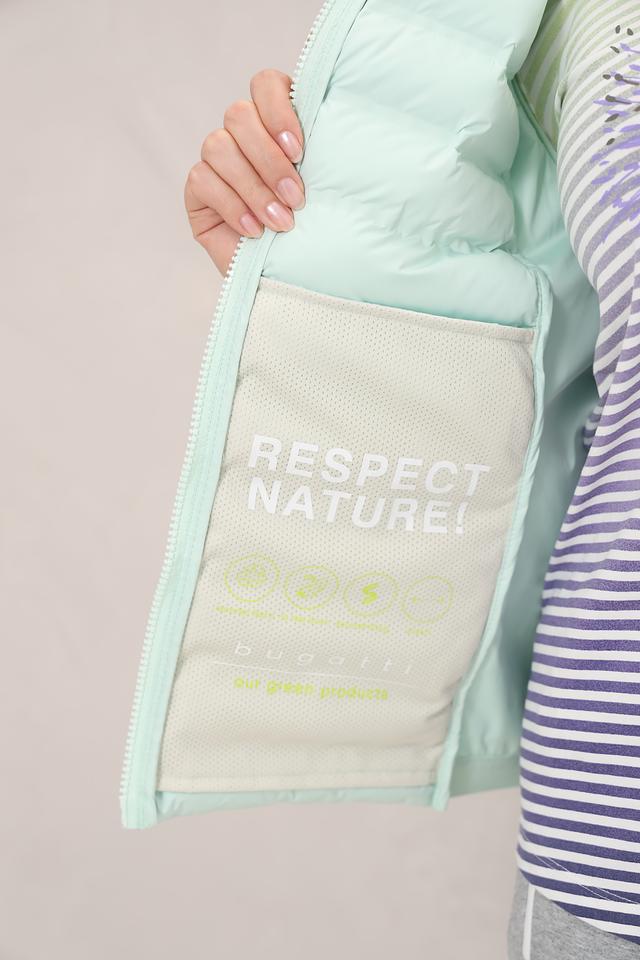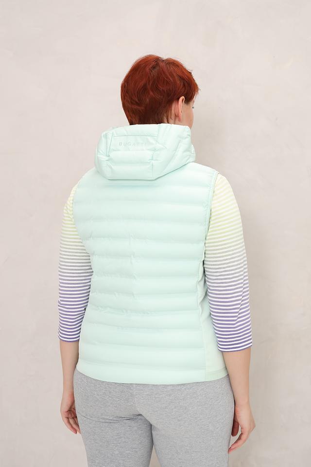 Этот жилет от Bugatti выполнен в нежном мятном цвете и имеет стеганую текстуру. Он станет прекрасным выбором для создания многослойных образов в прохладную погоду.