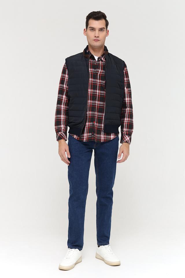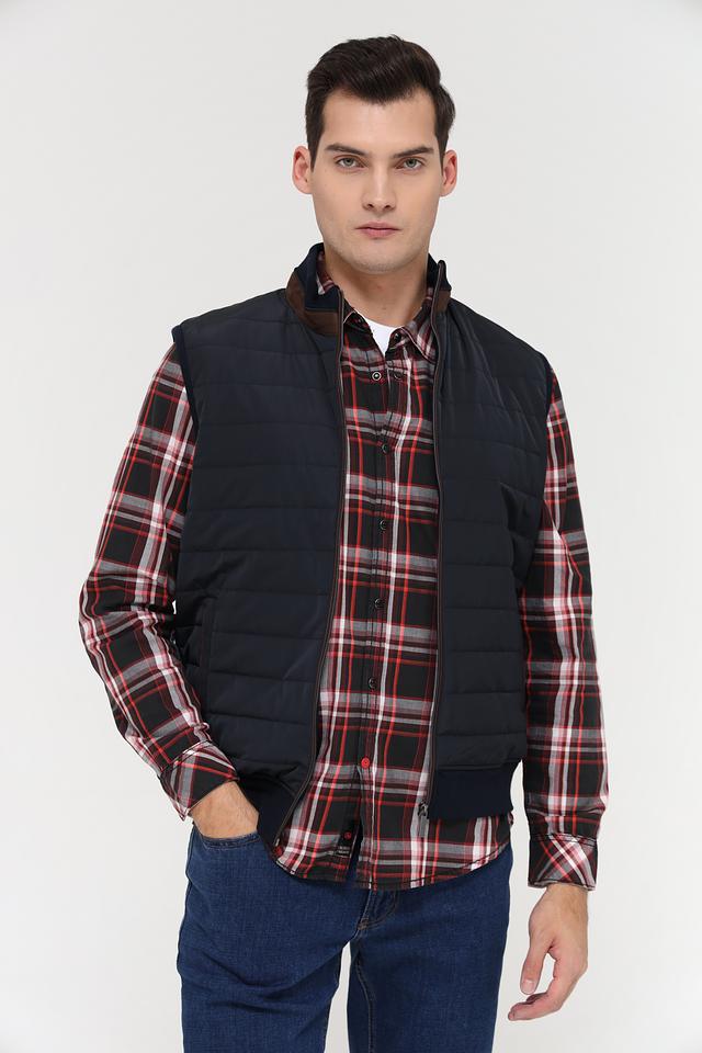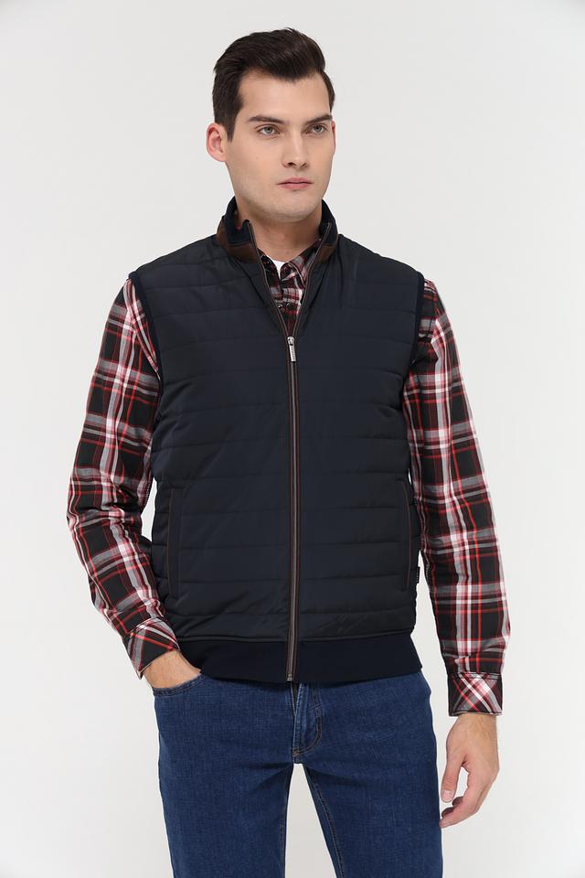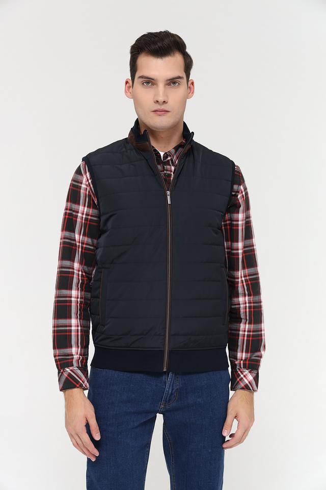 Жилет имеет стеганую фактуру, которая придает ему современный вид. Застежка-молния позволяет легко надевать и снимать жилет, а воротник-стойка защищает от ветра. Темно-синий цвет делает его универсальным дополнением к различным образам.