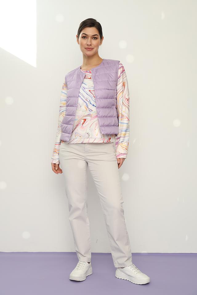 Этот стеганый жилет от Gerry Weber станет отличным дополнением к вашему гардеробу. Он выполнен в нежном лавандовом цвете, который легко сочетается с различными оттенками одежды.