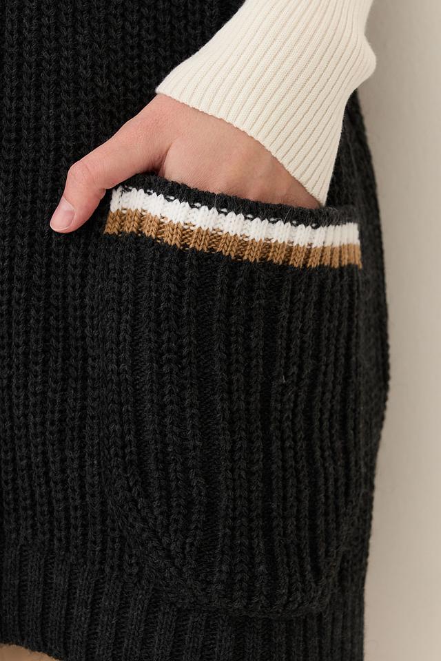Представляем вязаный жилет NEWVAY – стильное и функциональное решение для создания многослойных образов. Изделие выполнено в сером цвете с контрастными полосками бежевого и кремового оттенков, что придает ему особую выразительность.
