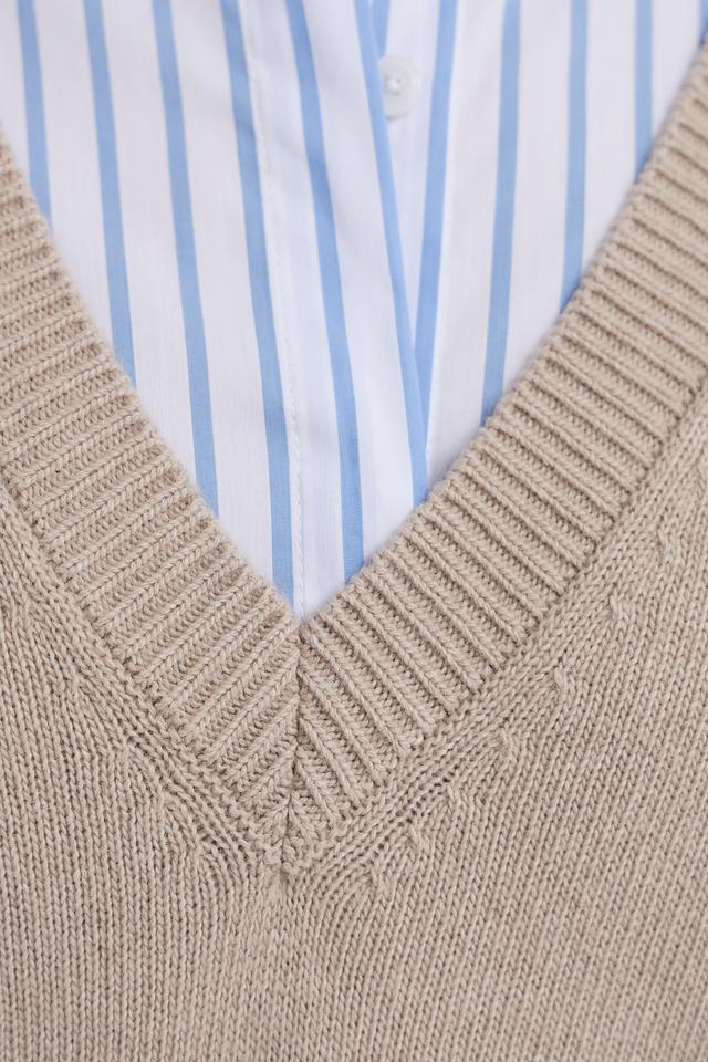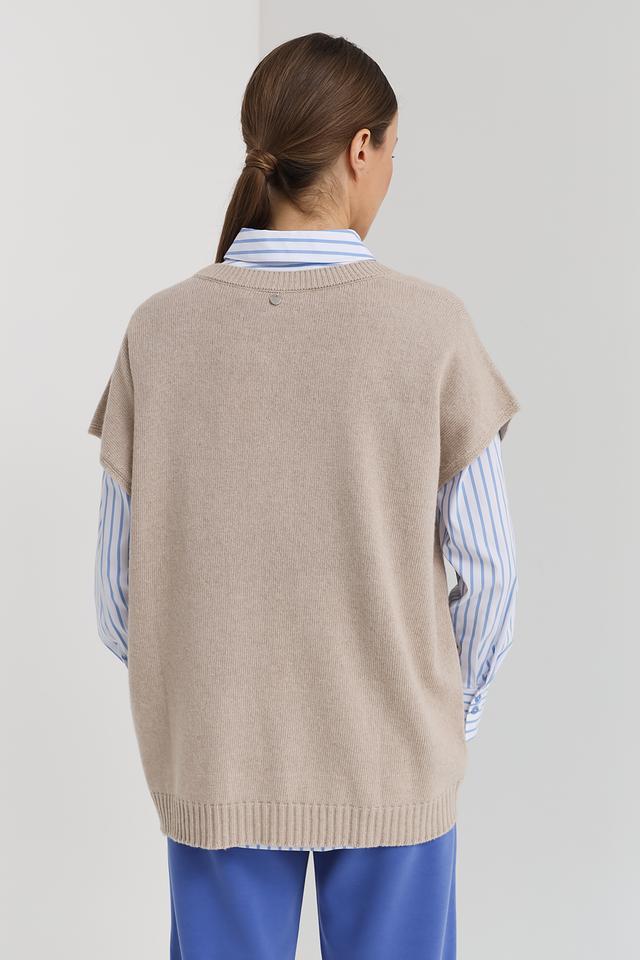 Бежевый жилет Rich and Royal из мягкого трикотажа станет отличным дополнением к вашему гардеробу. Модель имеет V-образный вырез и свободный крой, идеально подходит для создания многослойных образов. Состав: полиамид 35%, шерсть 30%, вискоза 30%, кашемир 5%