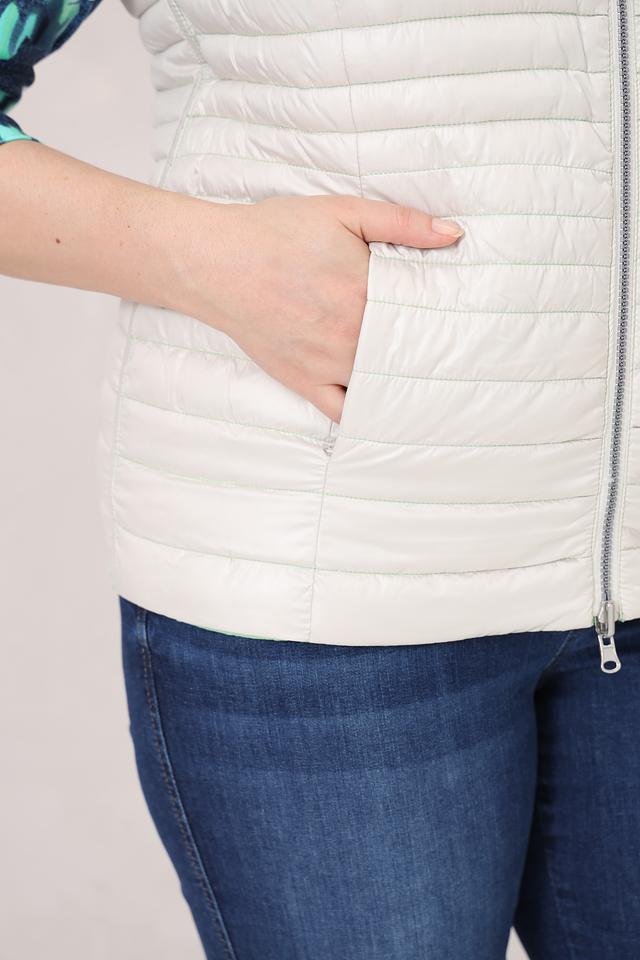 Жилет выполнен из высококачественного полиэстера, что обеспечивает легкость, комфорт и практичность в носке. Стеганая текстура придает модели современный вид.