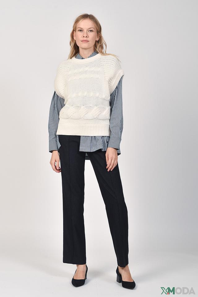 Состав жилета – хлопок 60% и полиакрил 40%, что обеспечивает комфорт в носке, мягкость и практичность. Этот жилет прекрасно сочетается с рубашками, блузками и топами, позволяя создавать стильные и уютные образы на каждый день.