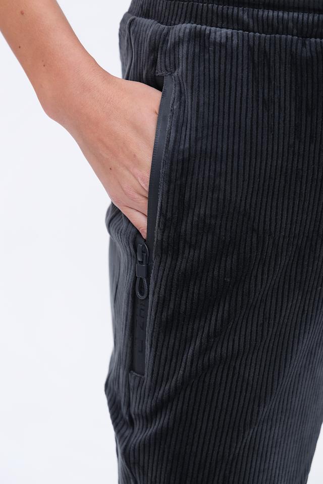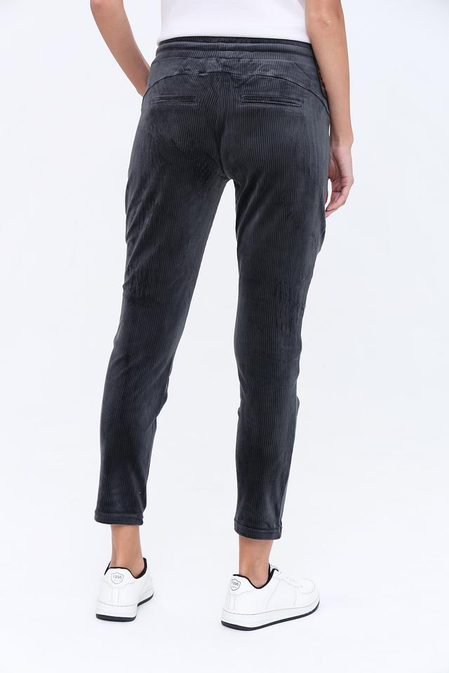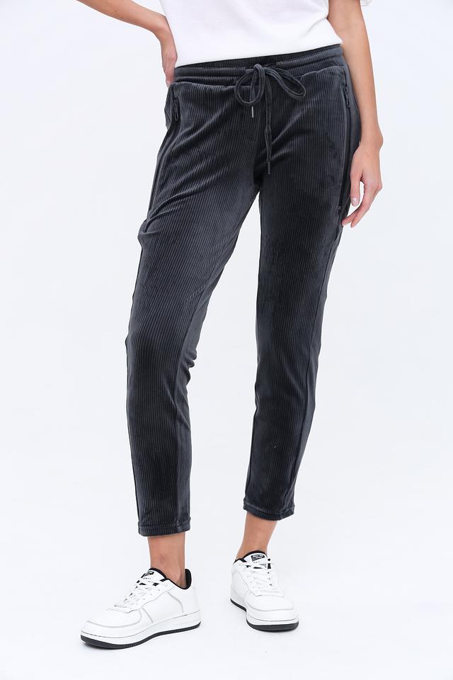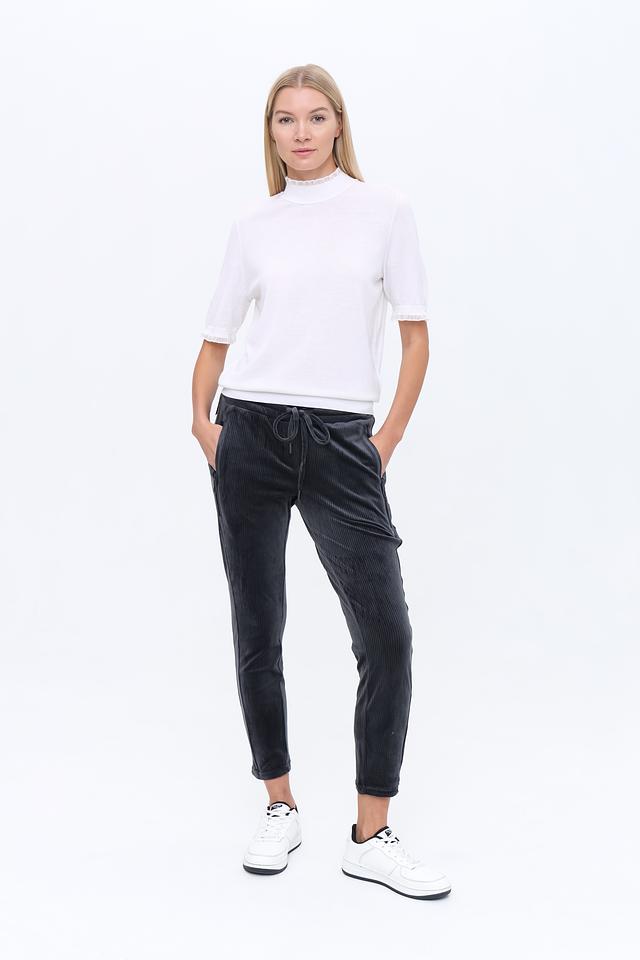 Женские брюки Zhrill черного цвета выполнены из мягкого вельвета с вертикальной полоской. Модель дополнена удобным поясом на резинке и завязками для регулировки. Состав: полиэстер 95%, эластан 5%