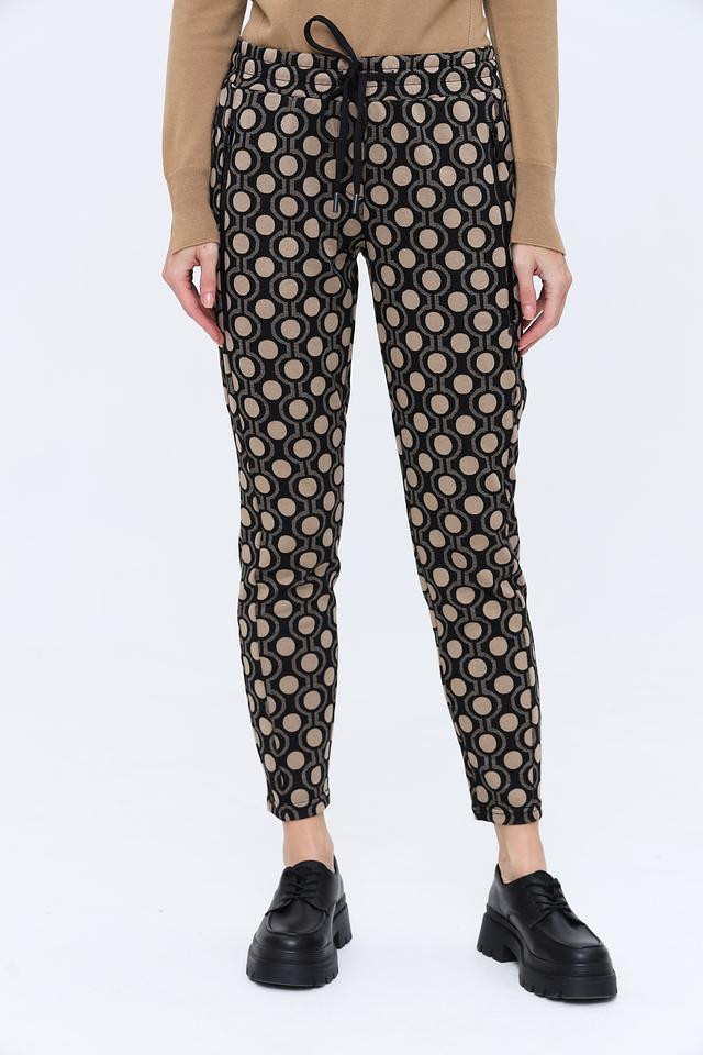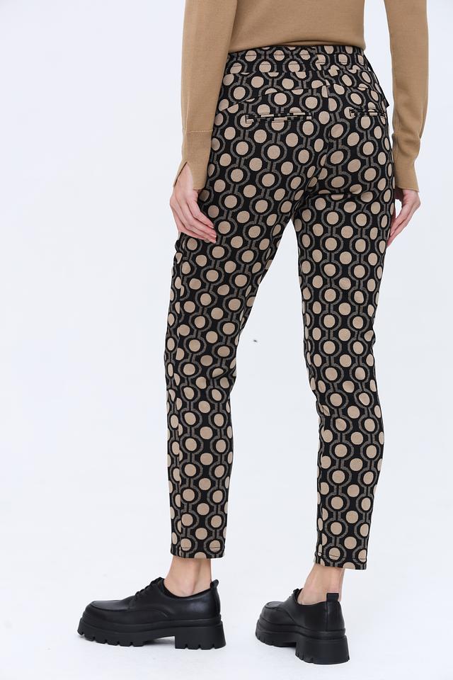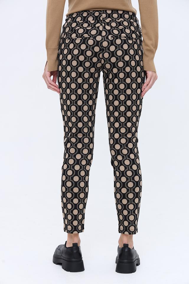 Женские брюки Zhrill чёрного цвета с оригинальным геометрическим принтом — стильное и комфортное решение для создания модных образов. Модель выполнена из мягкой ткани с добавлением вискозы и эластана, обеспечивающих удобную посадку и свободу движений. Состав: полиэстер 72%, вискоза 26%, эластан 2%