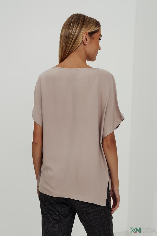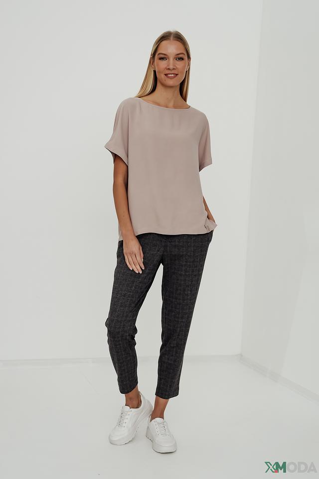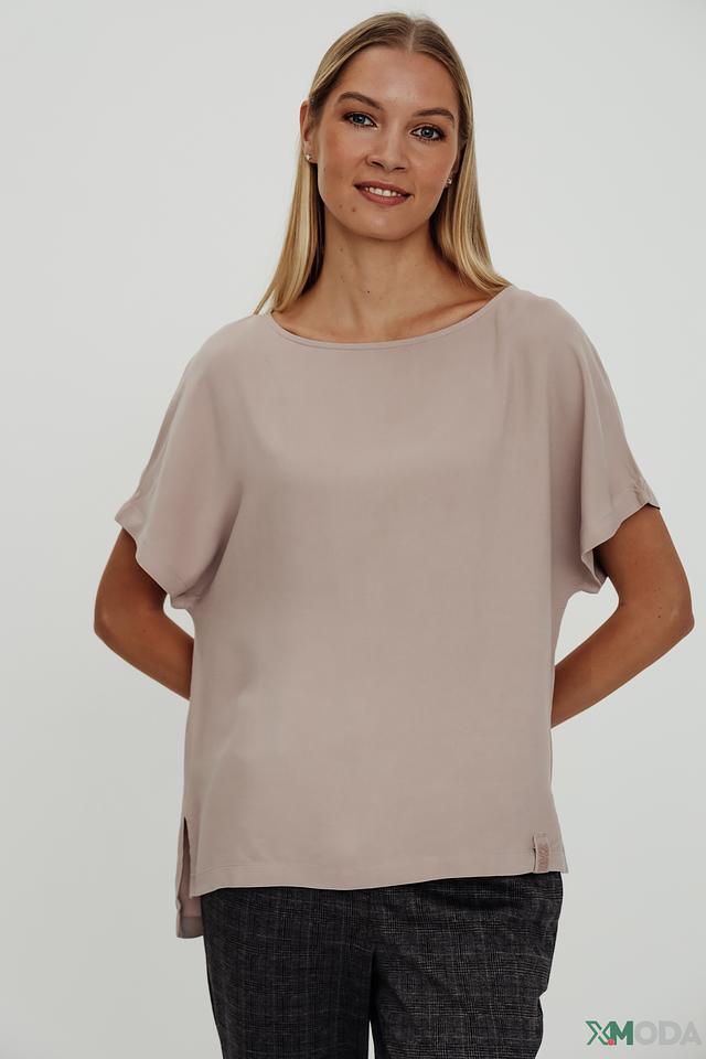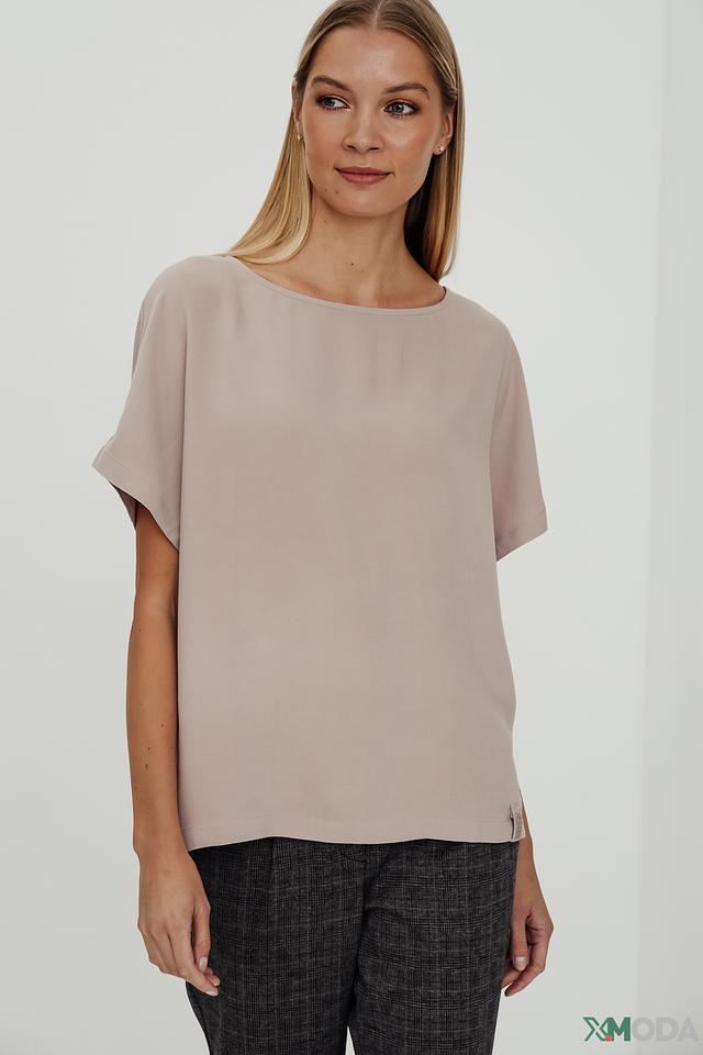 Блуза имеет свободный крой, который не сковывает движения и позволяет создать расслабленный образ. Округлый вырез горловины и короткие рукава с манжетами придают модели элегантность и женственность.