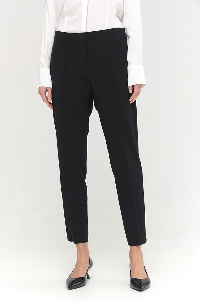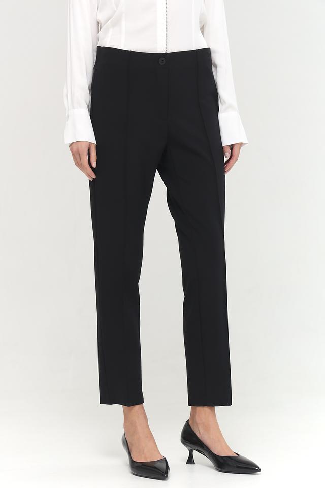 Эти классические брюки от ZRS станут незаменимой частью вашего гардероба. Выполненные в строгом чёрном цвете, они легко сочетаются с различными элементами одежды, позволяя создавать разнообразные образы.