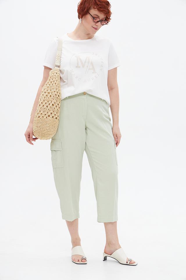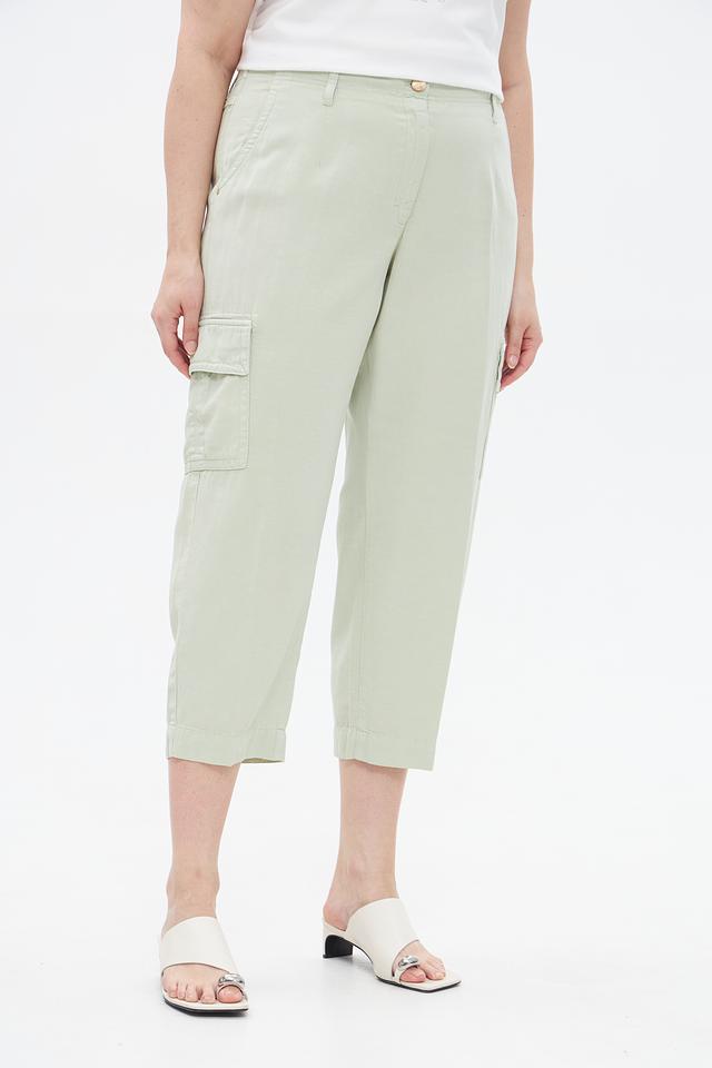 Женские брюки карго ZRS мятного цвета, выполнены из мягкого и приятного к телу лиоцела с хлопком и льном. Удобный крой и функциональные карманы делают их отличным выбором для повседневной носки. Состав: лиоцел 65%, хлопок 22%, лен 13%
