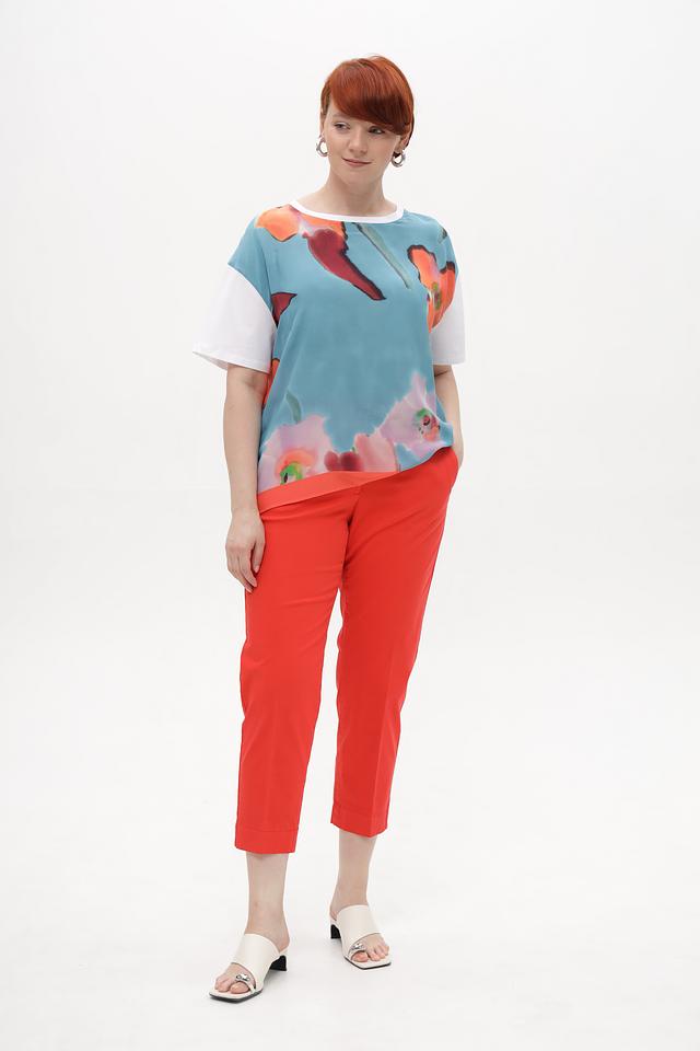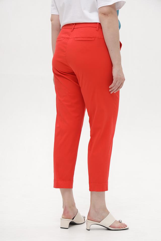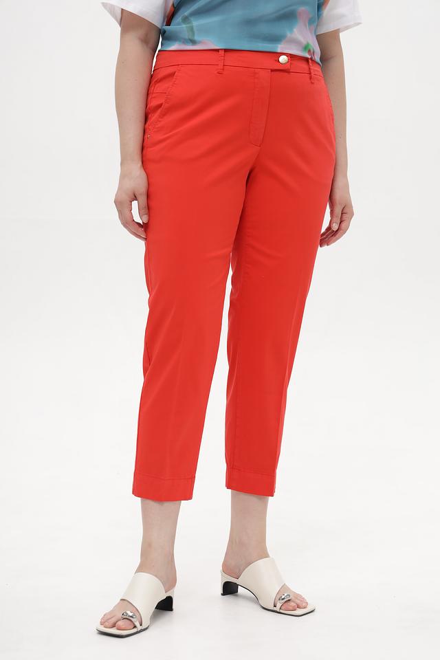 Яркий красный цвет делает эти капри акцентной частью вашего гардероба. Они прекрасно сочетаются с различными топами, блузками и обувью, позволяя создавать разнообразные стильные образы. Состав: хлопок 95%, эластан 5%.
