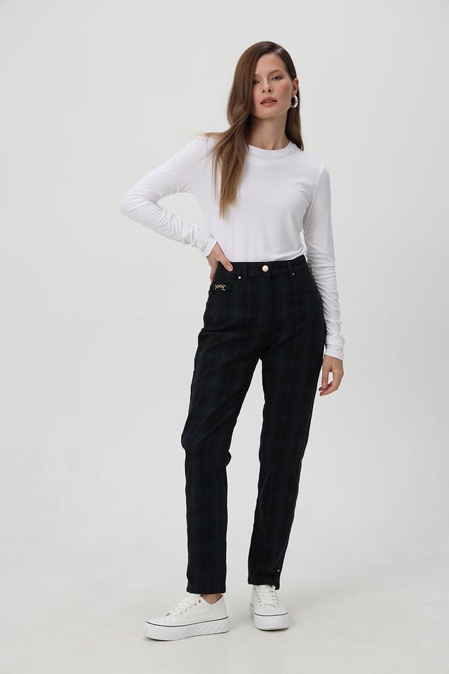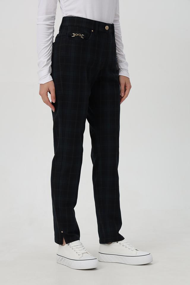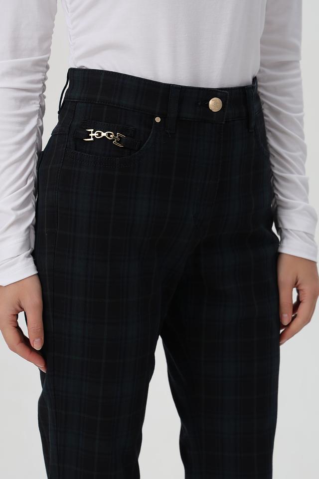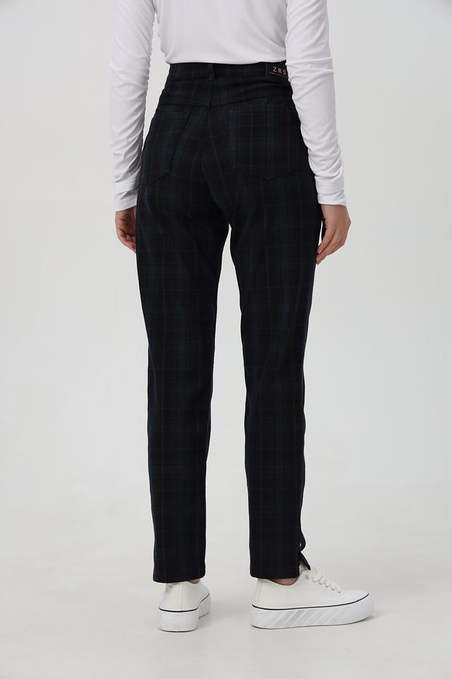 Классические брюки от бренда ZRS станут незаменимым элементом вашего гардероба. Модель выполнена в зеленом цвете с рисунком в клетку, который придает образу элегантность и актуальность.